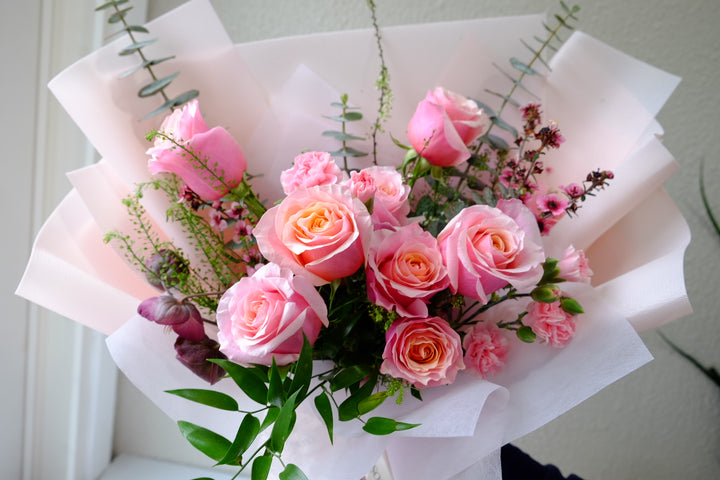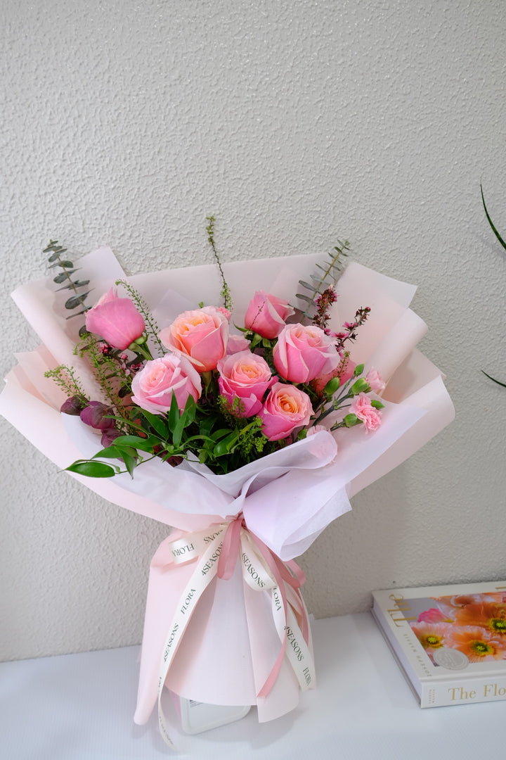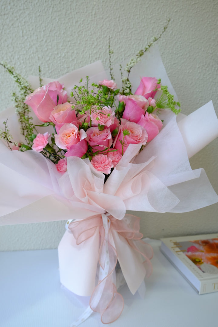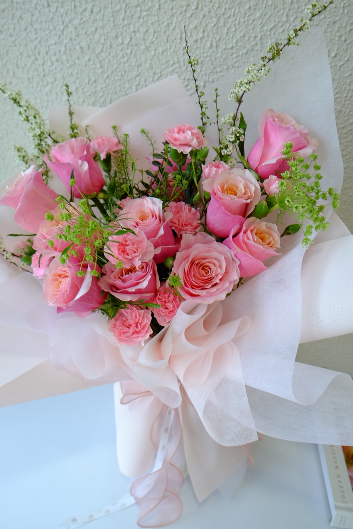 A Hand-Tied Dance of Elegance: The premium pink Rose with carnation Bouquet